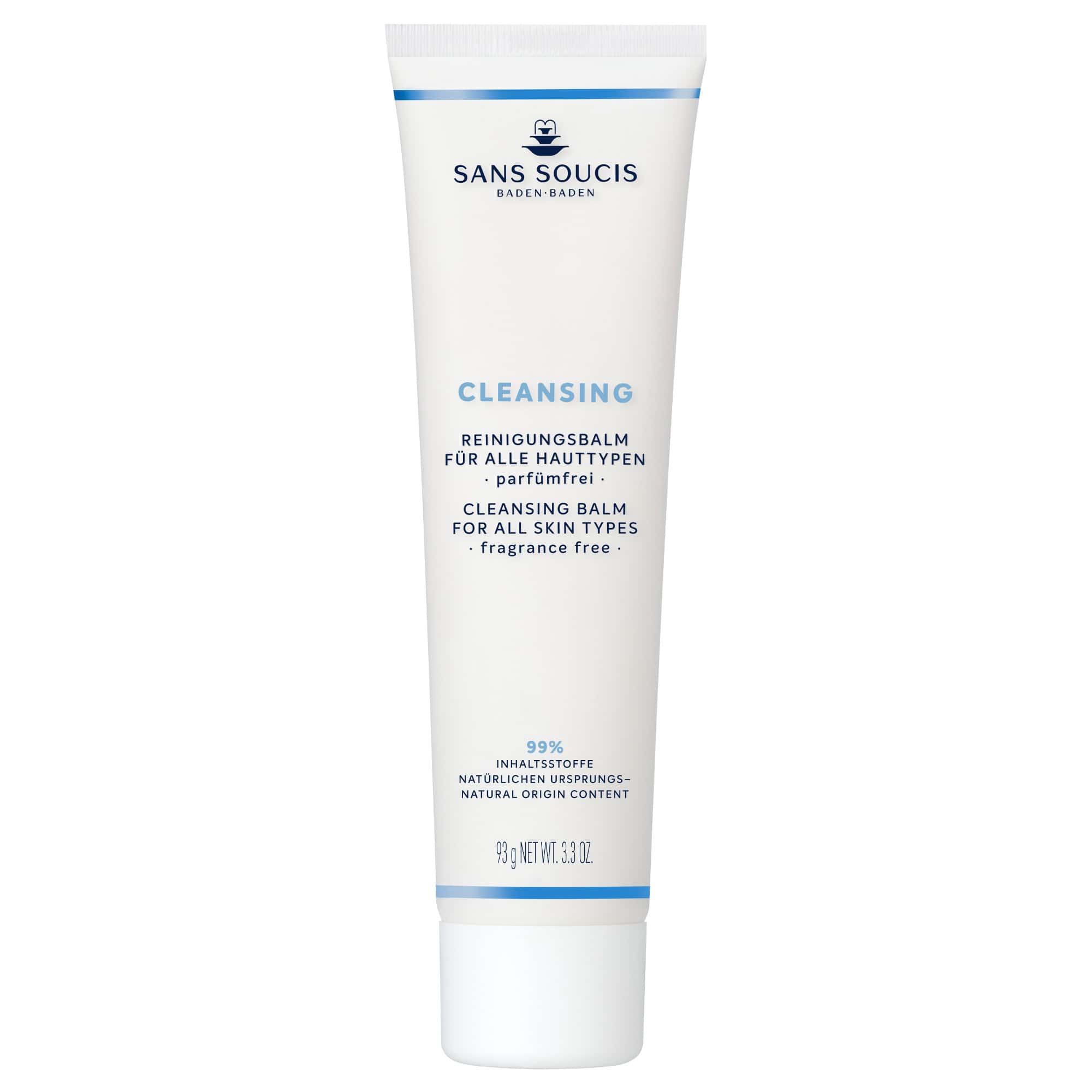 Sans Soucis Cleansing Balm är ett rikligt, smältande balm som skonsamt och effektivt avlägsnar makeup, smuts och föroreningar utan att torka ut huden. Formulan är berikad med mineralrikt termalvatten från Baden-Baden och närande oljor som lämnar huden mjuk, smidig och väl återfuktad. Passar alla hudtyper, särskilt torr och känslig hud.